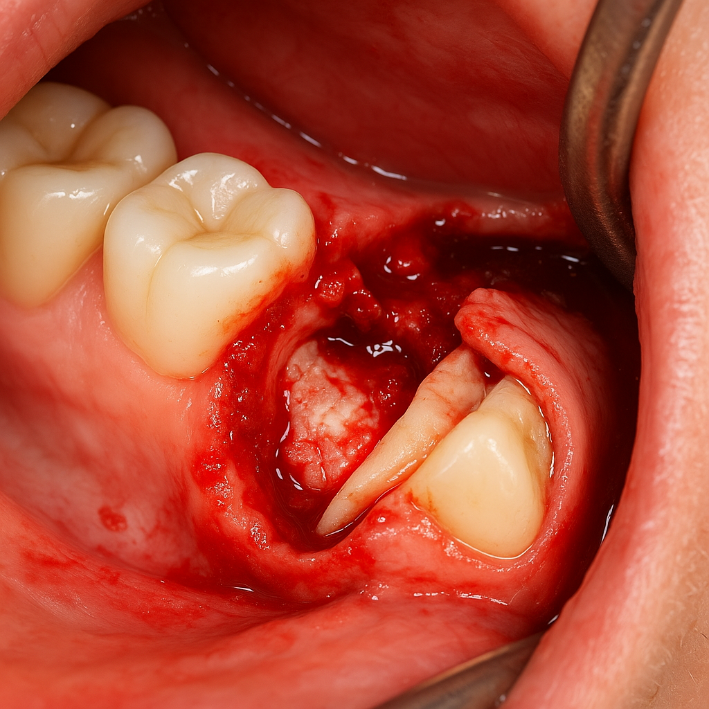 یکی از شایعترین دلایل مراجعه به جراح فک و صورت، دندان عقل نهفته است. این دندانها معمولاً در فک پایین یا بالا بدون اینکه بهطور کامل بیرون بیایند، زیر لثه و حتی استخوان گیر میکنند. در برخی موارد حتی به عصب فکی تحتانی یا سینوس ماگزیلاری بسیار نزدیک میشوند.